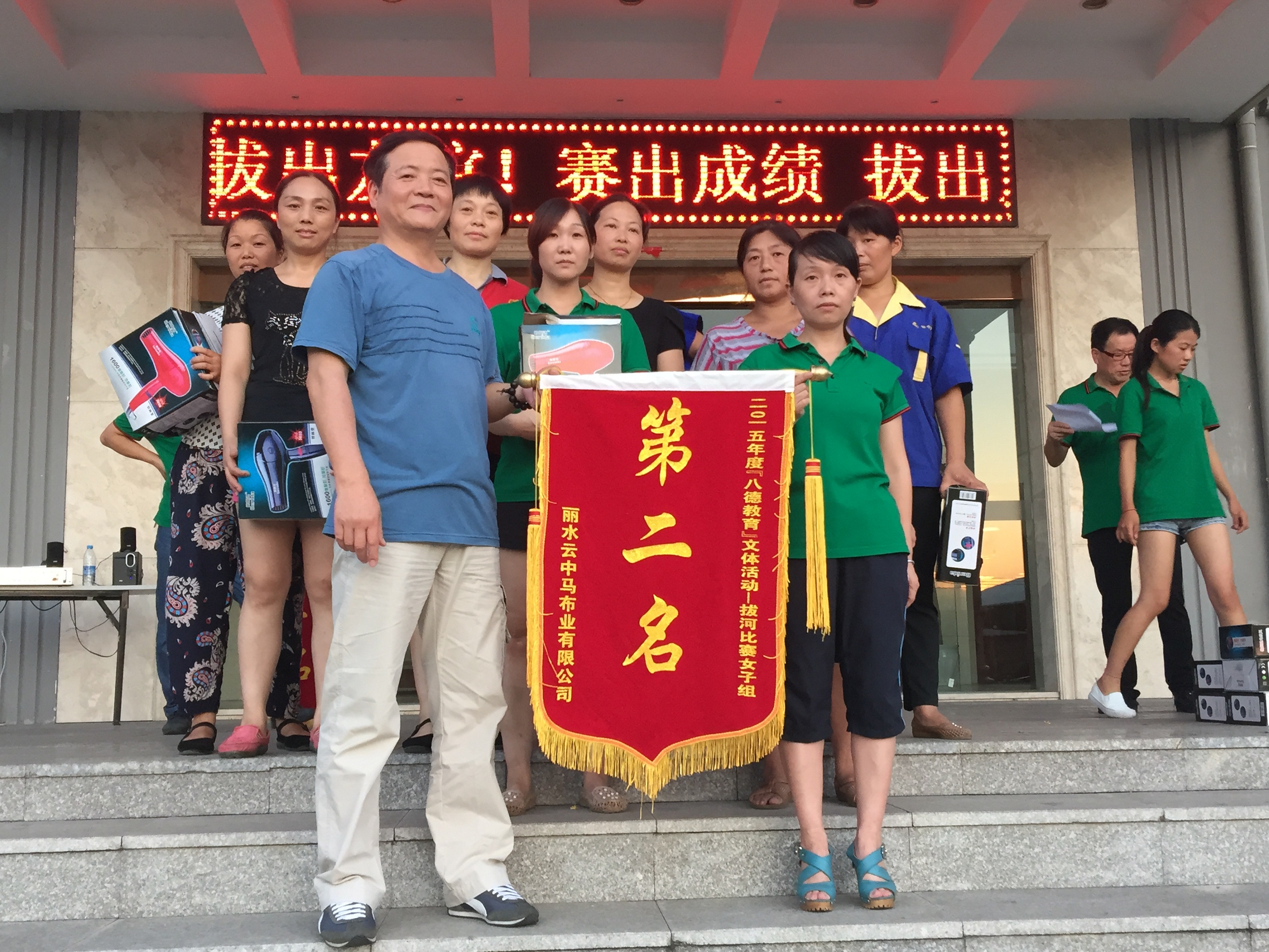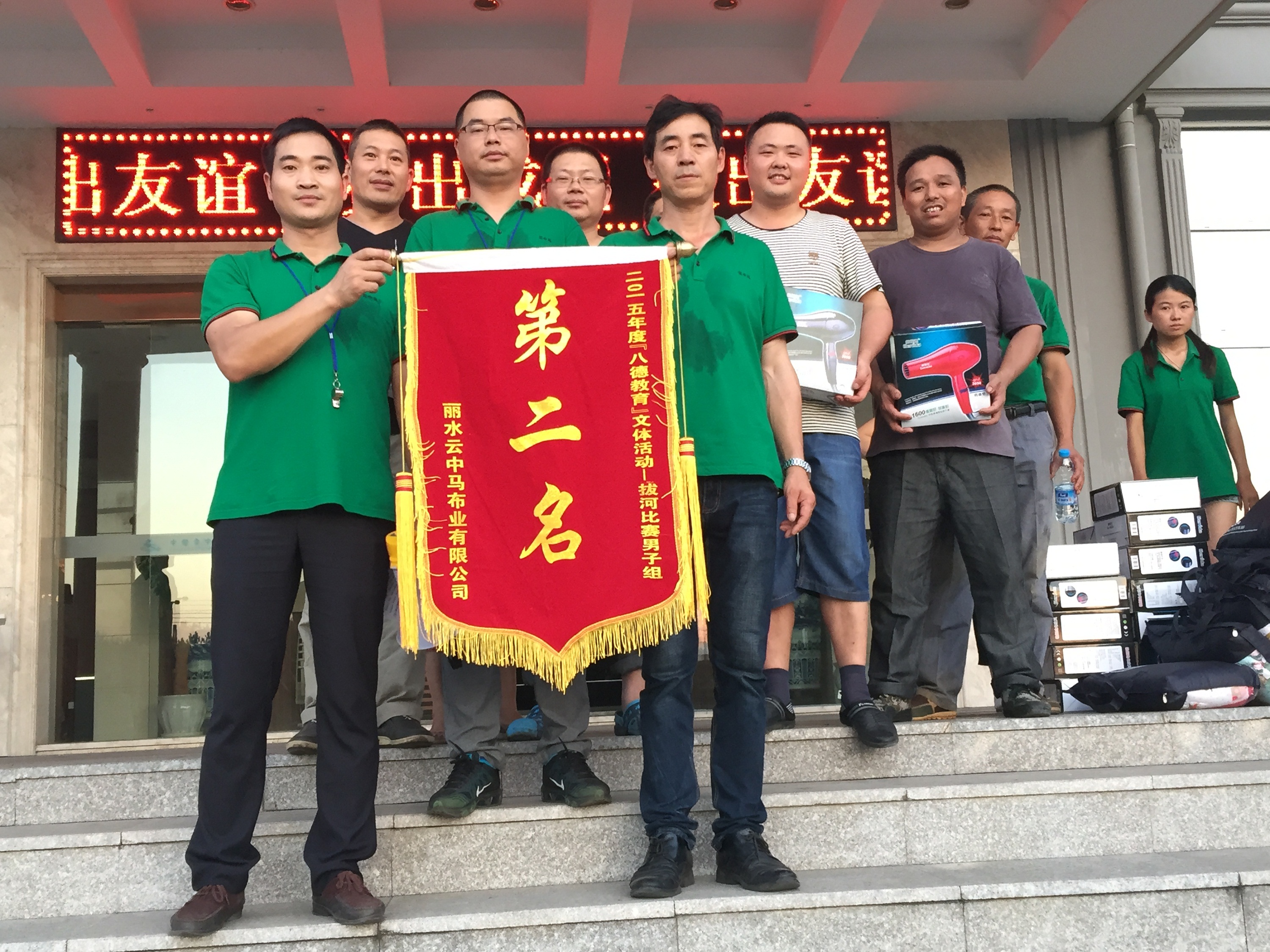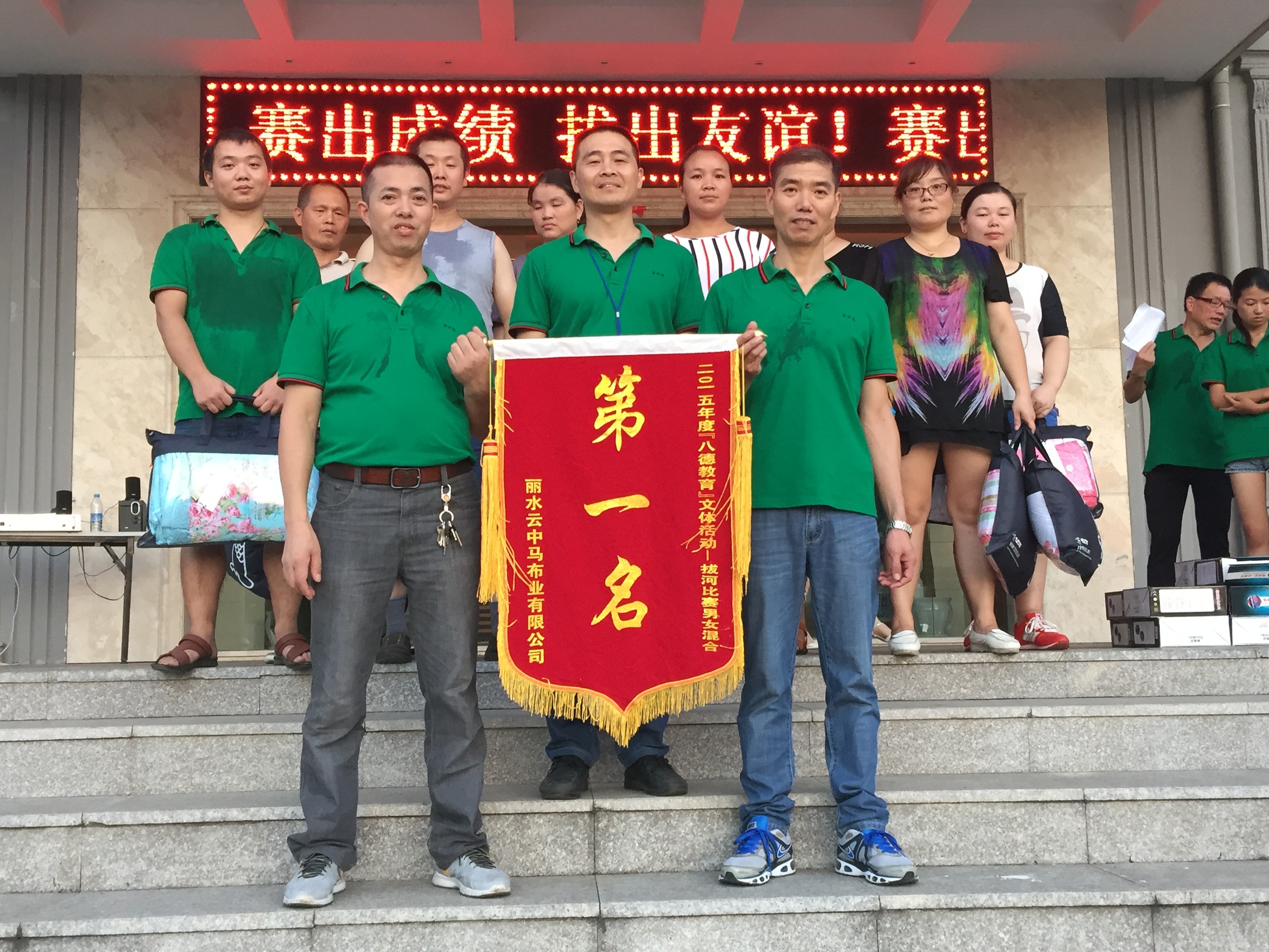 浙江云中馬布業股份有限公司7月22號-28號舉行以“八德教育”精神“孝、悌、忠、信、禮、義、廉、恥”為主題的文體活動和技能競賽,目的是活躍員工業余文娛生活,增強員工素質和公司的凝聚力,培育優秀的企業文化。本屆文體活動設乒乓球、羽毛球、臺球、象棋、拔河5項;技能比賽理布、脫水、備布、縫頭、接布、包針布、檢驗、計數10項。共258名智慧人士參與活動競賽,產生單項冠軍、亞軍、季軍各14名,團隊冠軍、亞軍各6名,獲獎人數102名。
