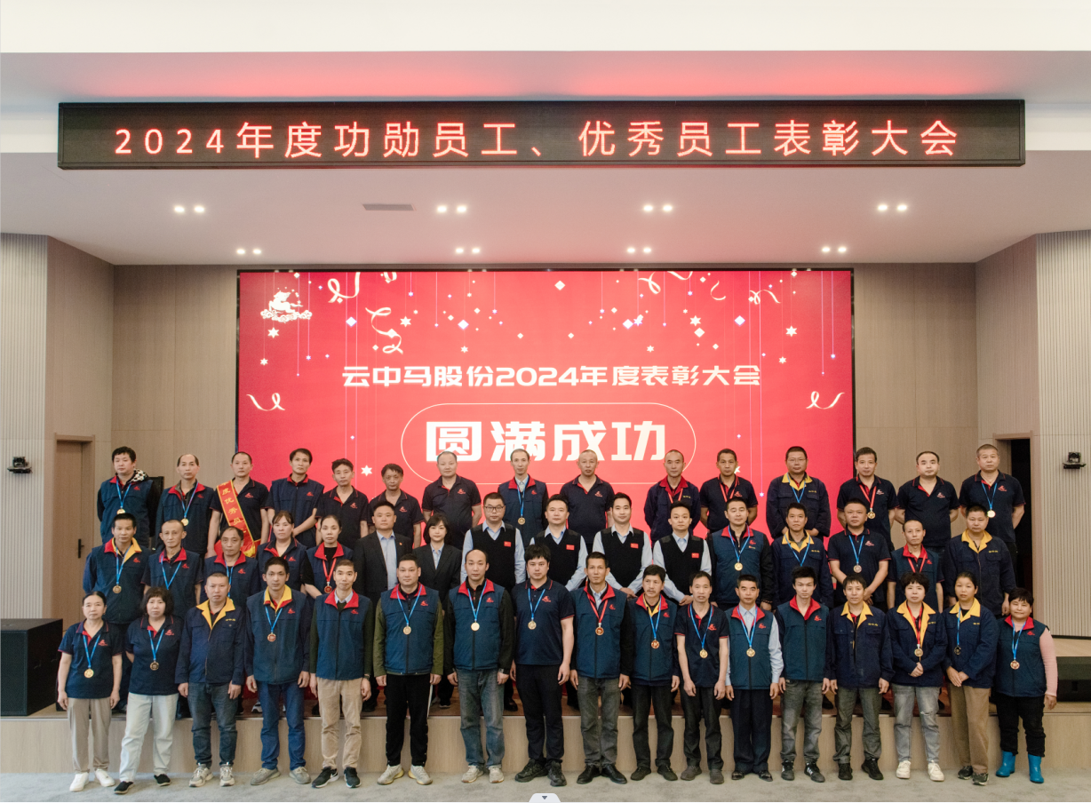 2025年4月25日上午,浙江云中馬股份有限公司在公司文化禮堂內,隆重召開了2024年度表彰大會。大會以“創新突破、團結奮進”為主題,旨在表彰過去的一年為公司發展作出突出貢獻的功勛員工和優秀員工等,以激勵全體職工更加昂揚斗志地投身到公司高質量發展的新征程中去。